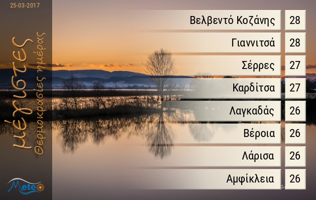 Υψηλές θερμοκρασίες σημειώθηκαν το Σάββατο 25/03 σε αρκετούς σταθμούς του δικτύου μας, όπως διακρίνεται και στον παρακάτω πίνακα.