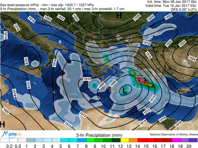 Νεώτερα για την πορεία του χαμηλού «Αριάδνη» και την εξέλιξη της κακοκαιρίας δίνονται στη συνέχεια:
